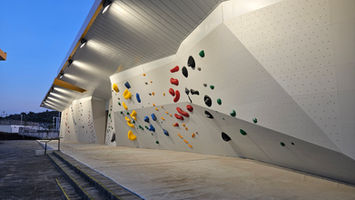 קיר טיפוס לילדים בתוך חצר בית ספר